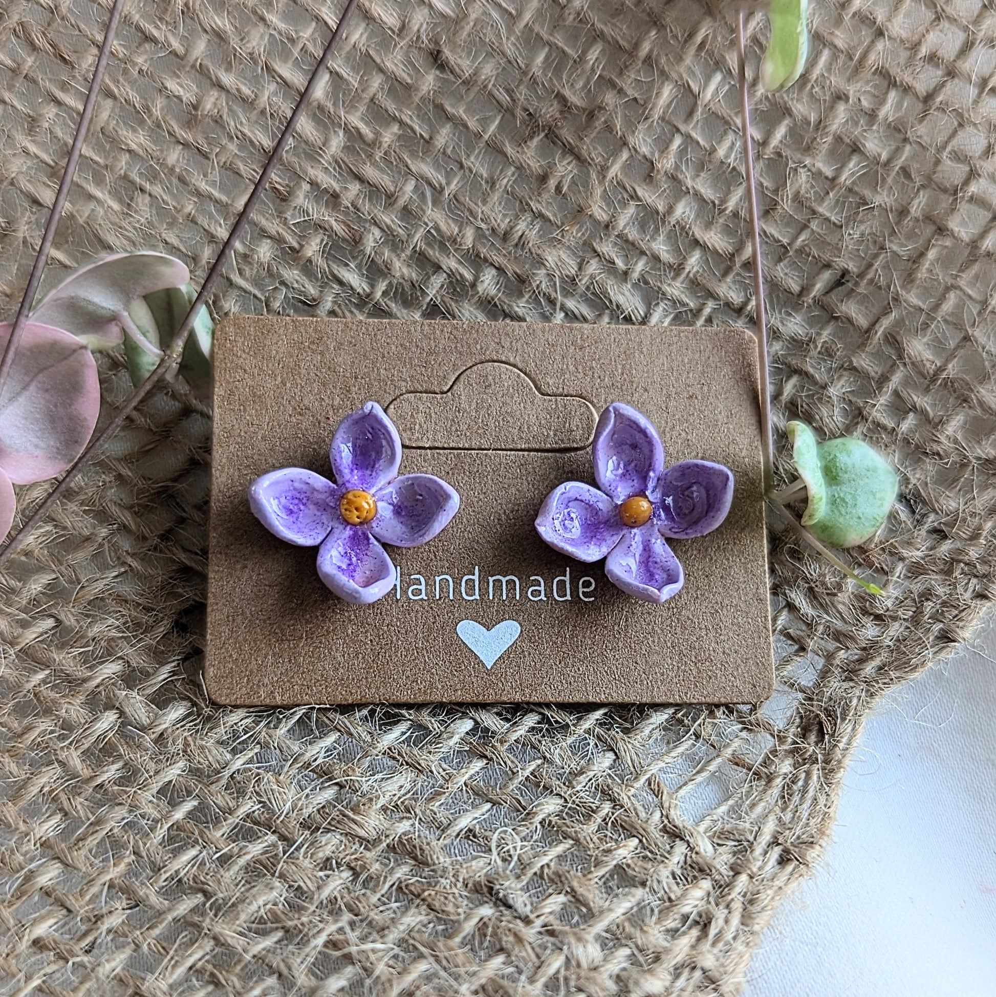 Cute and simple purple polymer clay lilac stud earrings. Welcome spring with these floral studs.